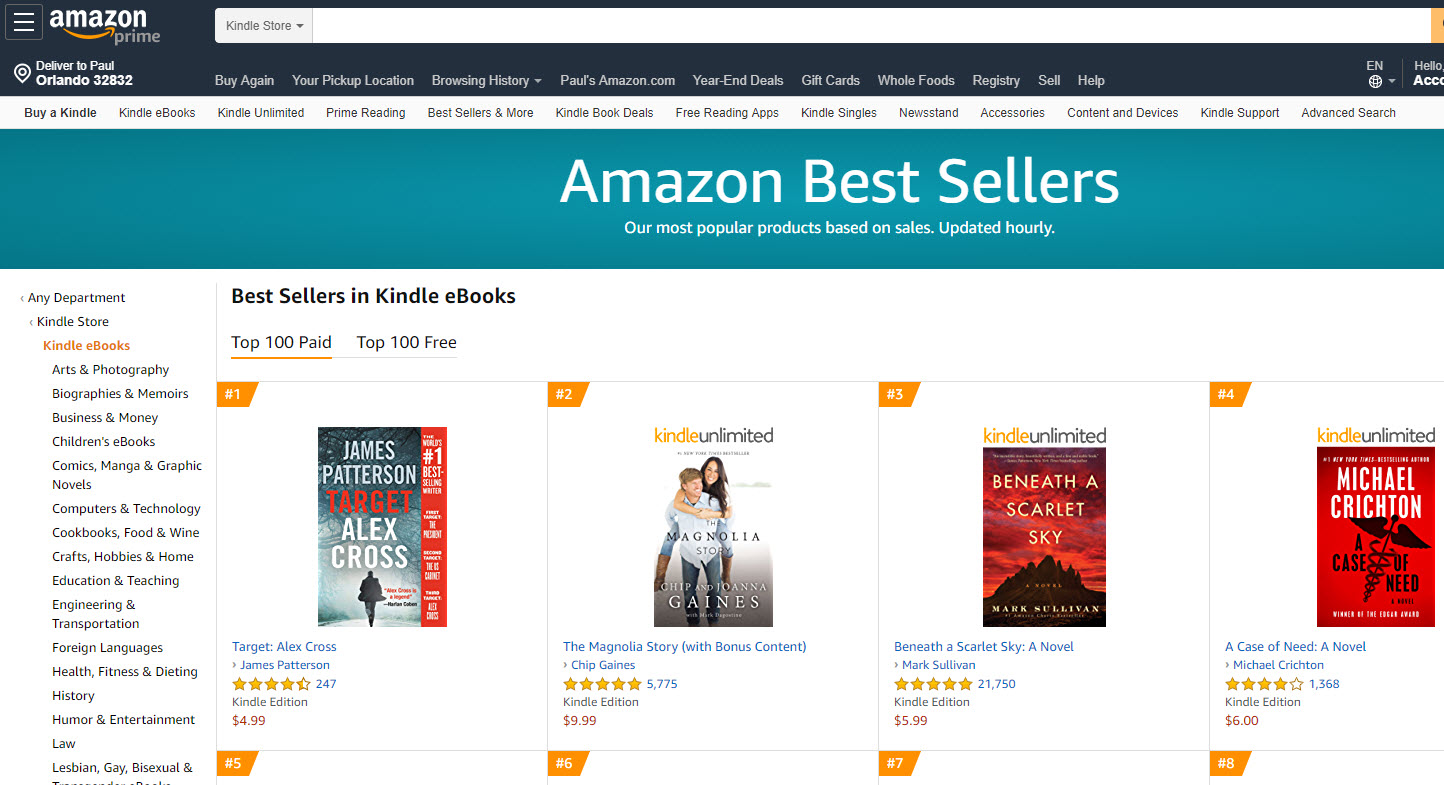 Well, no, not really. As of this writing, James Patterson is #1, but it would be nice, right? Number one seller in the Amazon US store?