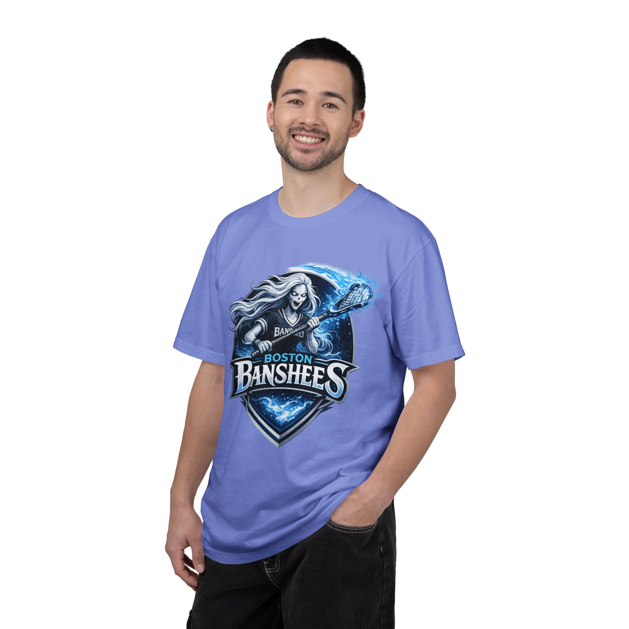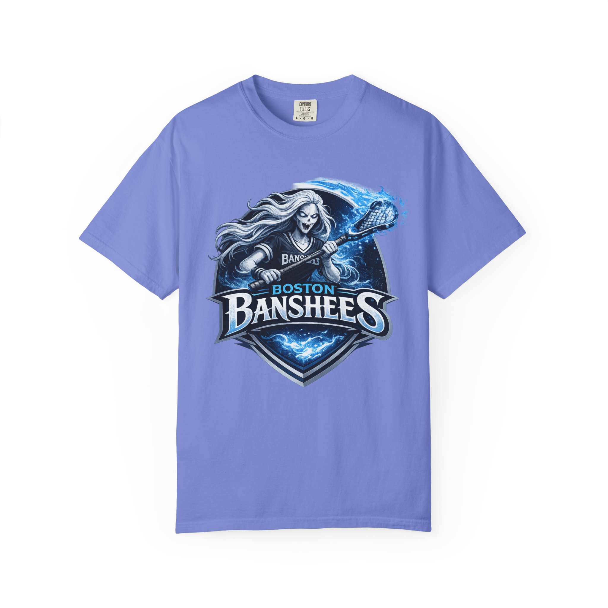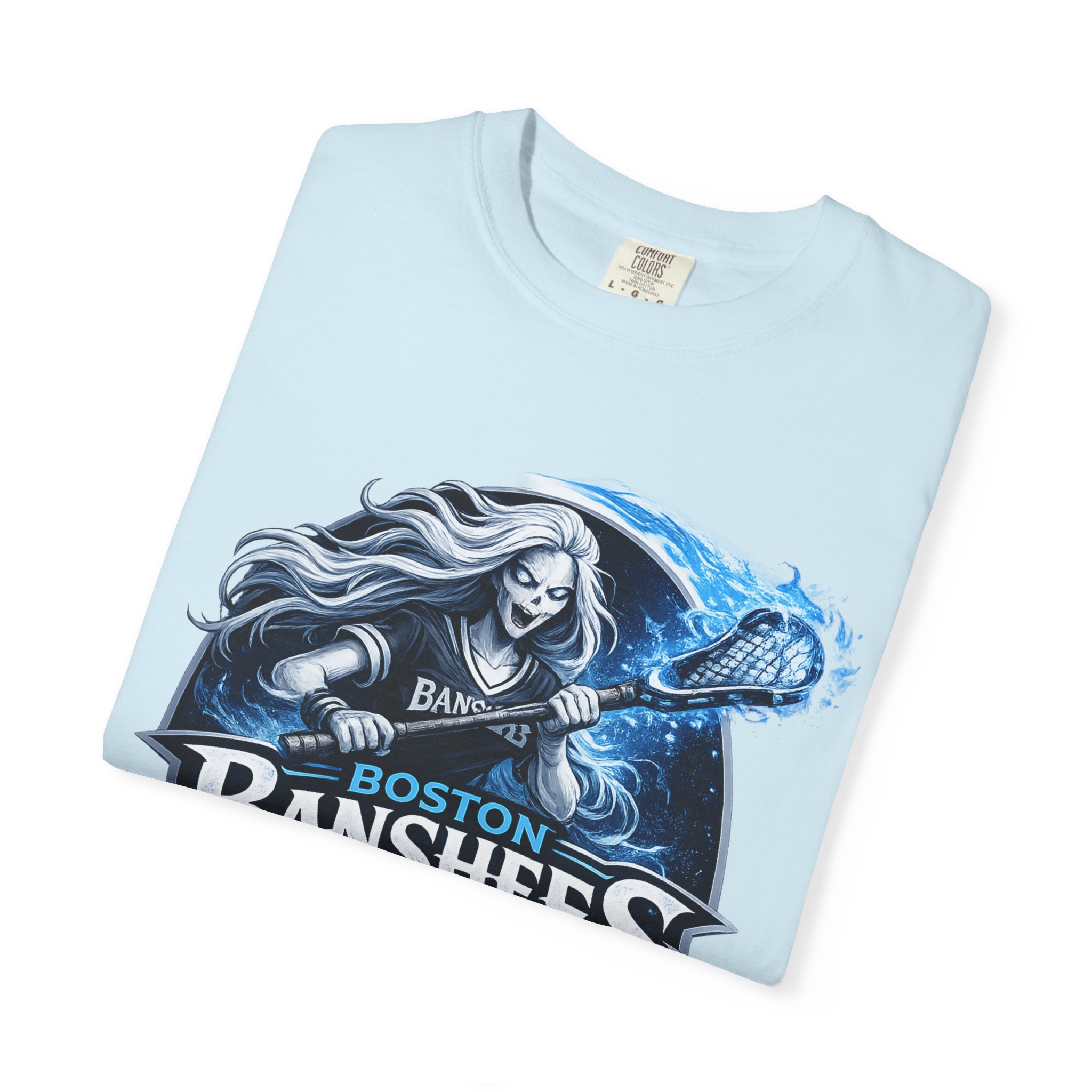 A garment-dyed, heavyweight tee that brings a stormy, rock‑and‑roll energy to everyday wear. The shirt’s front art features a fierce banshee brandishing a guitar, rendered in icy blues and charcoal tones that pop against the soft, vintage‑washed fabric. The relaxed fit and soft hand of the post‑dye cotton make it feel lived‑in from the first wear, while sturdy double‑needle stitching and a tubular, seam‑free body keep it durable and tidy. Wear it to show team spirit at a game, to the next gig, or when you want an instantly worn‑in look that still reads bold and curated.